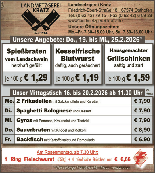 Den Speiseplan finden Sie unten und jeden Samstag im Nibelungen Kurier,bei Instagram und facebook